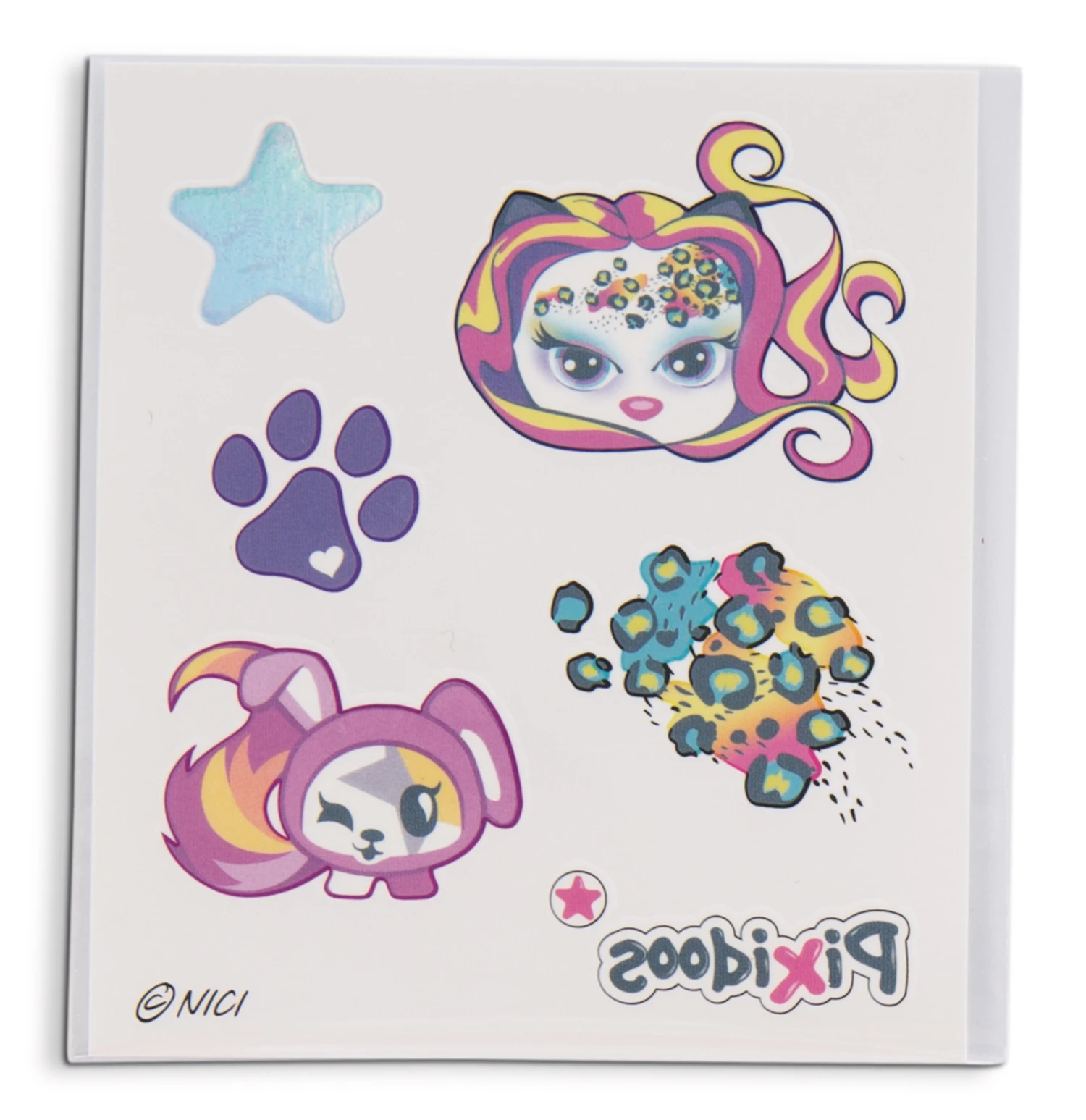 Zu der 20cm großen Puppe aus Plüsch mit den großen aufgestickten Augen, glitzernden Ohren und glitzernder Nase aus Kunststoff gibt es einen Kamm, passende Tattoos sowie ein Armbändchen.